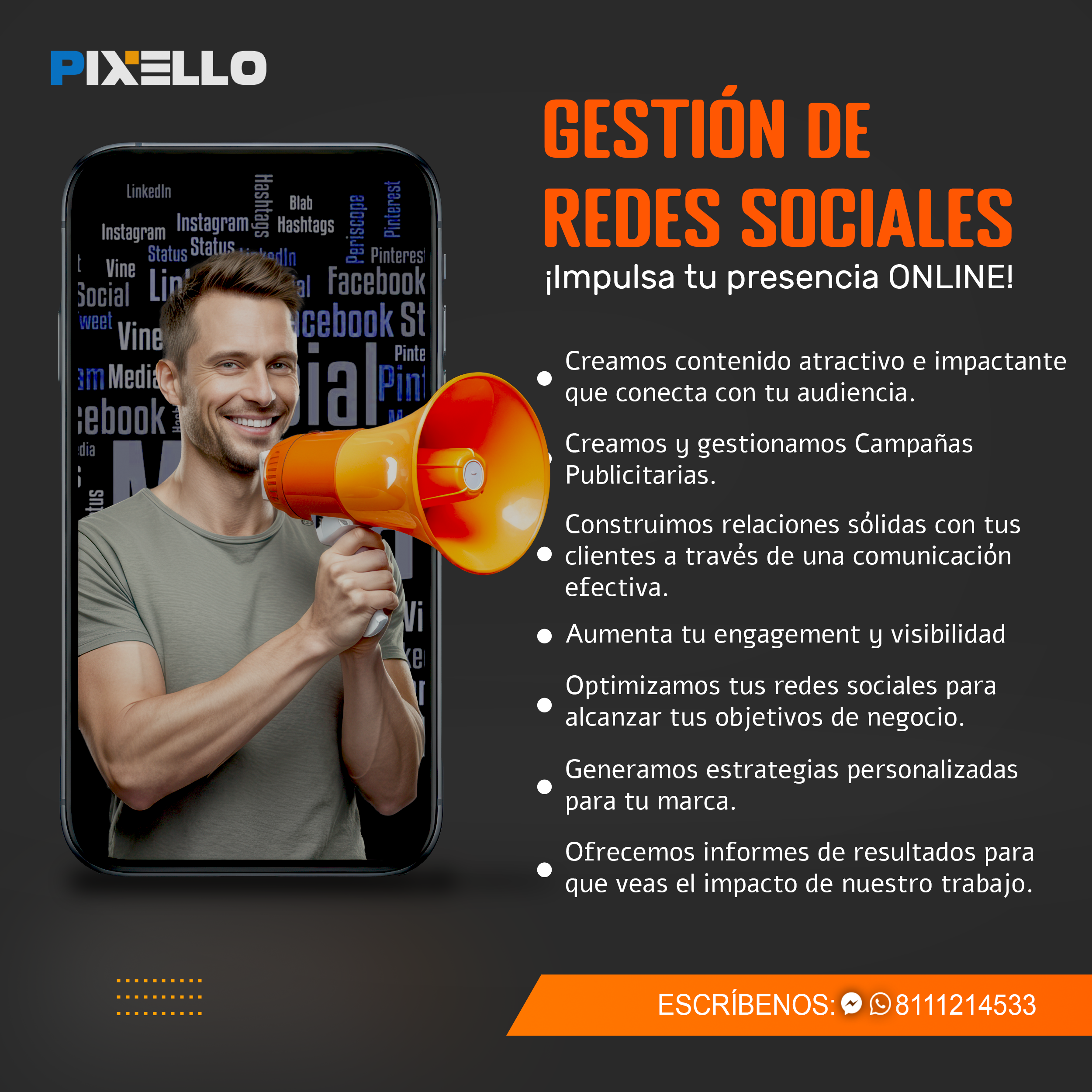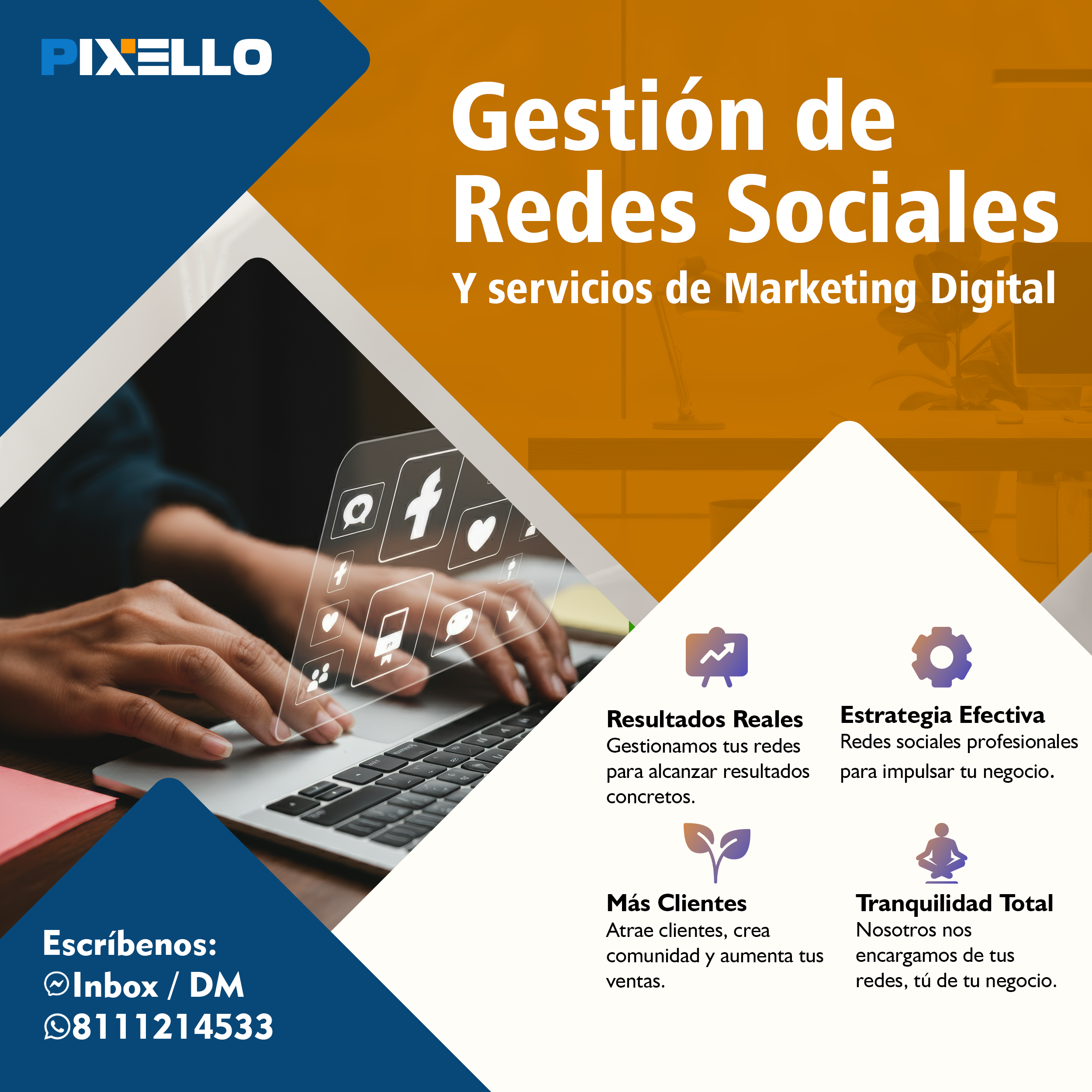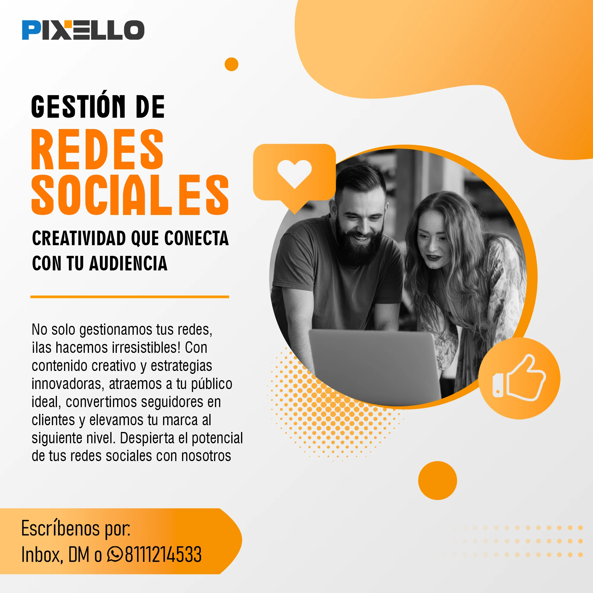 Te entregamos informes detallados y transparentes sobre los resultados de tus campañas, para que puedas ver el impacto de tu publicidad en tus redes sociales. Te garantizamos un servicio profesional, eficiente y satisfactorio.
