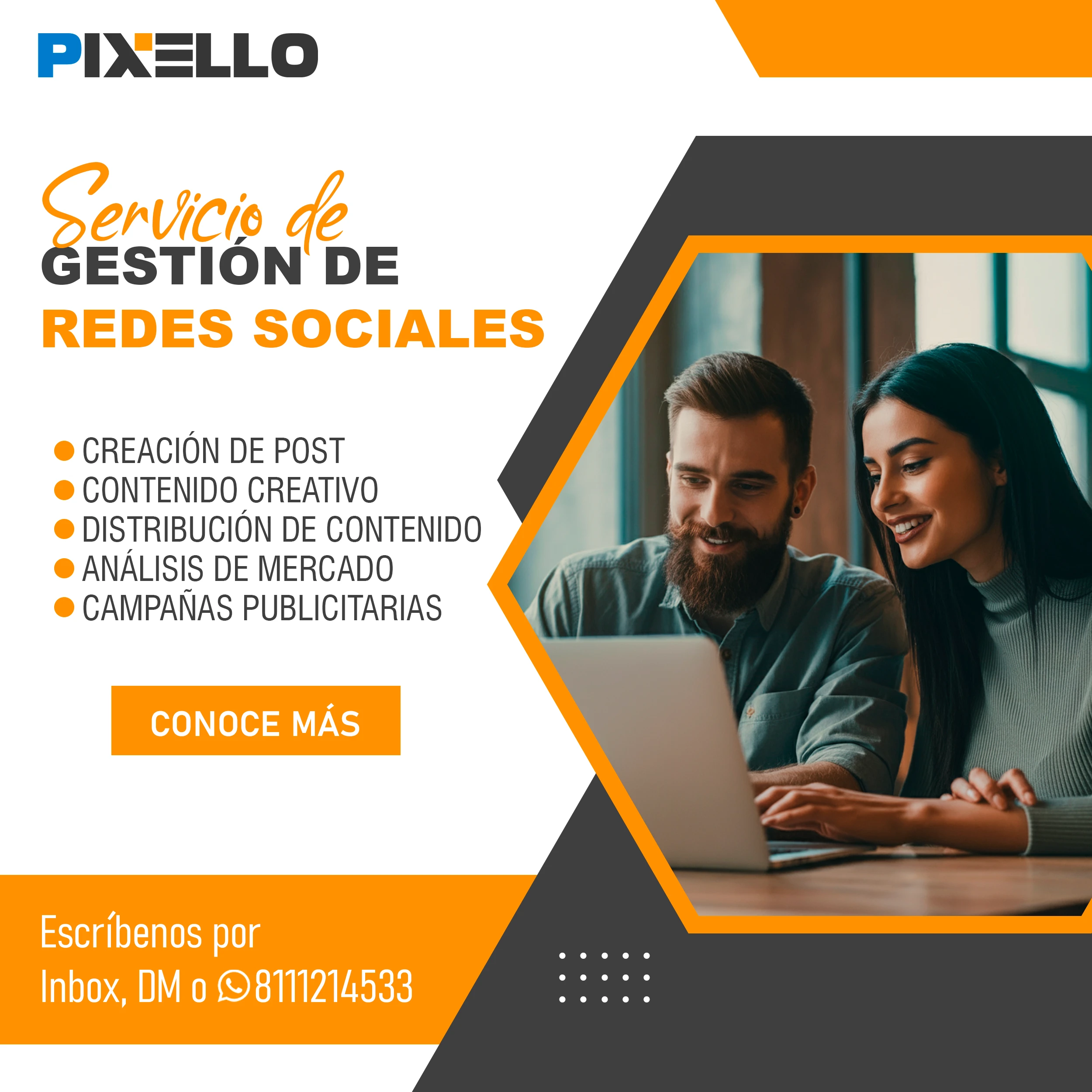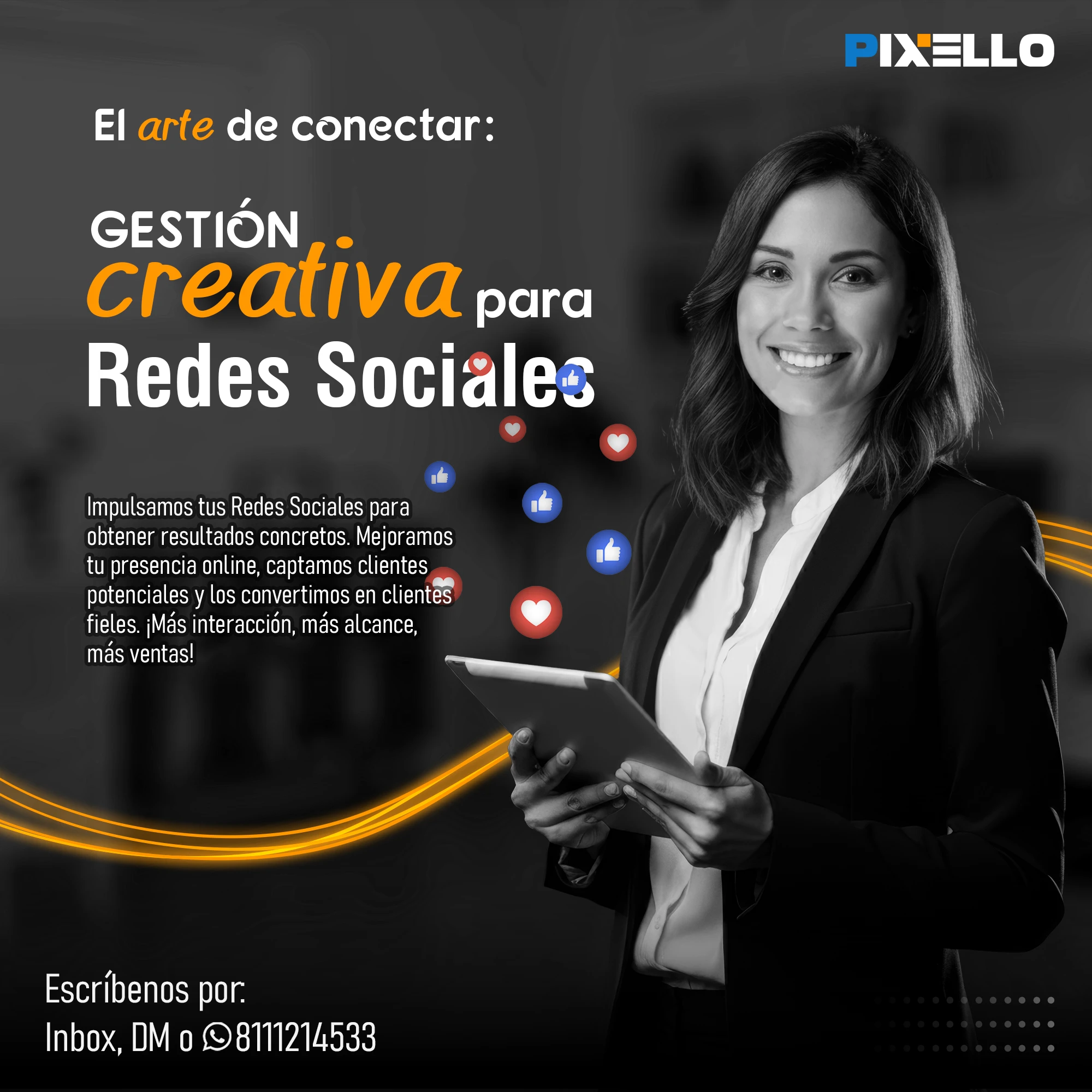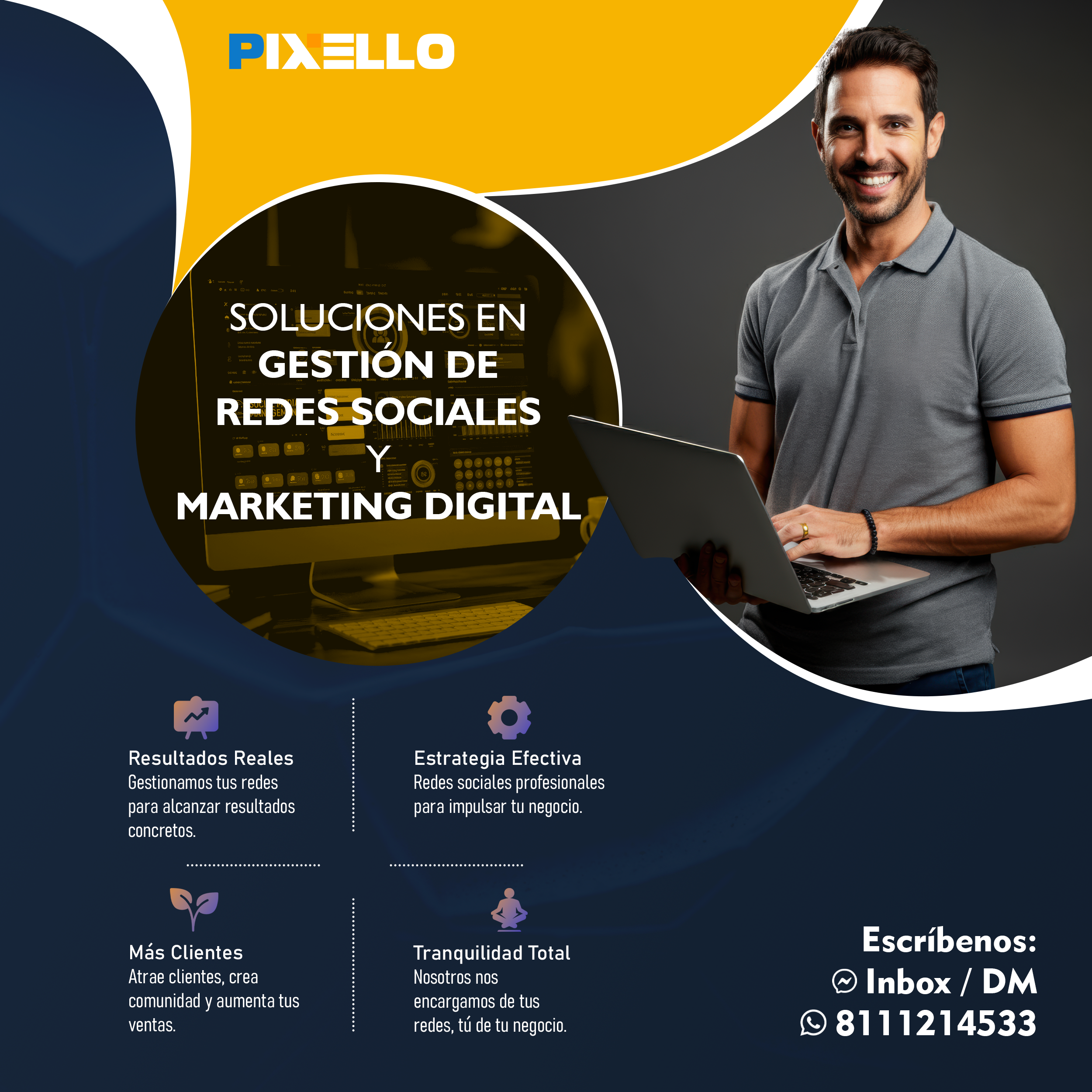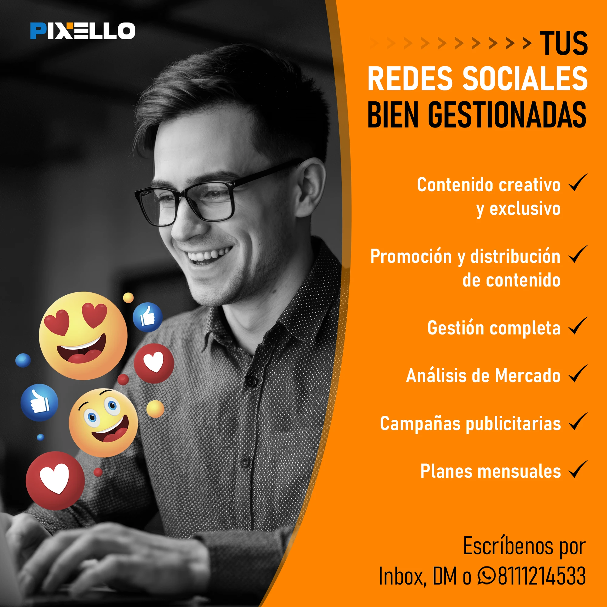 ¿Quieres hacer crecer tu negocio con el poder de la imagen y la comunicación? Entonces, Pixello es tu mejor opción. En Pixello, somos expertos en crear soluciones visuales y digitales para todo tipo de proyectos. Ya sea que necesites gestionar tus redes sociales, diseñar tu página web, producir fotografía y video comercial, o generar contenido de calidad, nosotros tenemos lo que buscas. En Pixello, nos adaptamos a tus necesidades y te ofrecemos un servicio personalizado, profesional y eficiente. No importa cuál sea tu objetivo, nosotros te ayudamos a lograrlo.